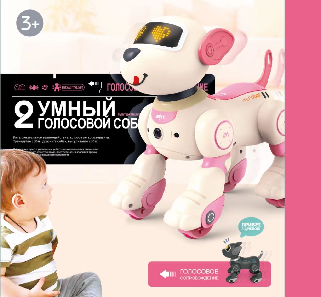 Собака робот Щенок ''Дружок'' обладает изысканным мастерством, отличным внешним видом и идеальным качеством имеет множество функций, таких как программирование, сенсорное и голосовое управление, следуй за мной, танцы с музыкой и так далее.