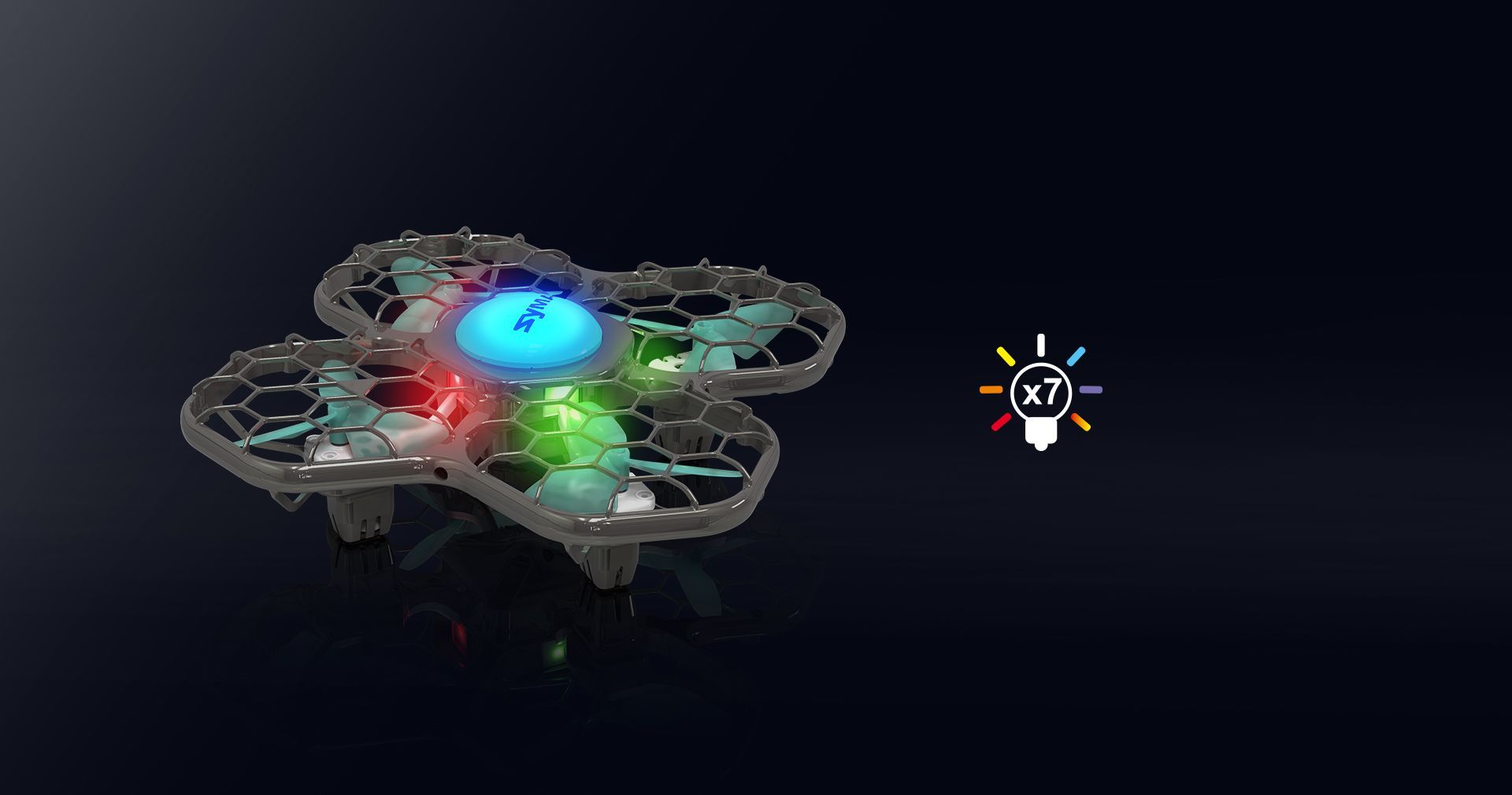 Встроенный бародатчик позволяет взлетать и приземляться нажатием всего одной кнопки, а во время полета помогает удерживать текущую высоту. Режим HEADLESS превращает пилотирование в забаву. В этом режиме квадрокоптер летит в нужном направлении независимо от того, куда сориентирована передняя часть дрона, а если захочется пошалить, активируйте высокую скорость, и «SYMA-X26», повинуясь командам с пульта, сможет легко кувыркаться на 360 градусов в любую сторону.
