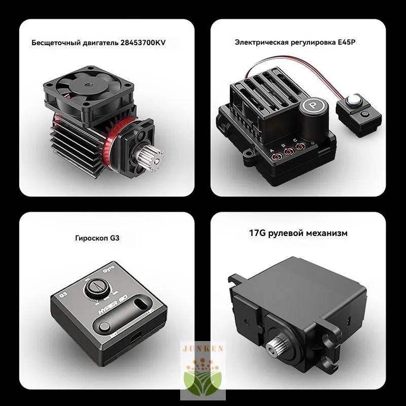 Полный привод повышает проходимость и управляемость модели. На Hyper Go установлен бесколлекторный двигатель 2845KV, влагозащищенный приемник и регулятор ESC 45А. Мощный аккумулятор Li-Ion 7.4V 2000 mah, идущий в комплекте, придает модели большую мощность! Пульт управления на частоте 2.4Ghz позволит управлять моделью на расстоянии до 120 метров. LED подсветка фар и кузова сделает игру в темное время суток незабываемой.