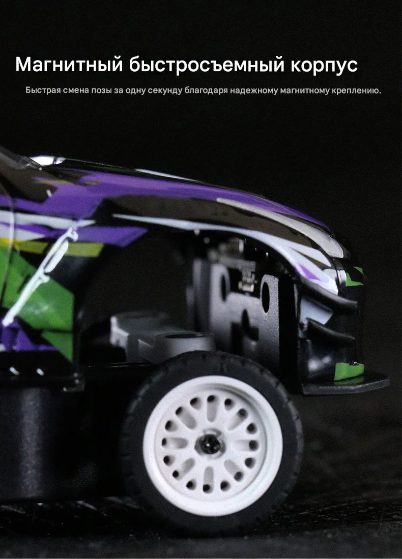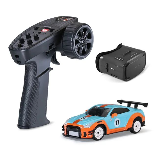 Радиоуправляемая модель для дрифа Nissan GTR зеленый c камерой и гироскопом 1:43 , Набор Sniclo FPV MG 117 , Машина+пульт+Очки FPV V2