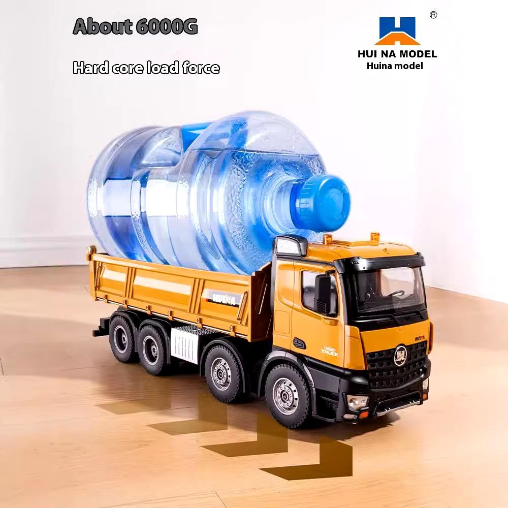 Миниатюрная копия четырёхосного самосвала с вместительным кузовом с поворотными 2 осями . Самосвал выполнен очень реалистично и полностью функционирует. Машина обладает высокой проходимостью . Такое решение позволяет избежать проскальзывания передних и задних колес одновременно.