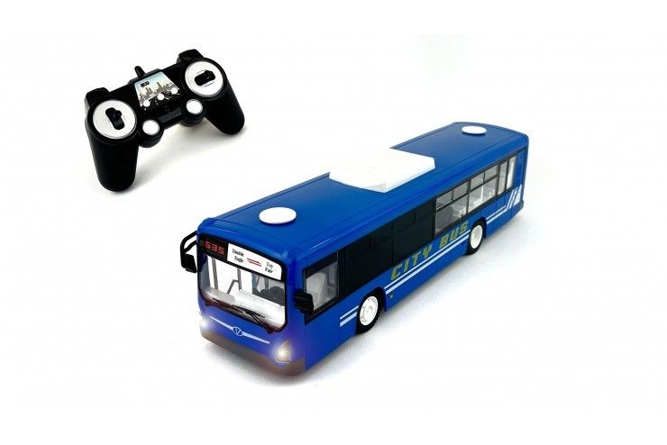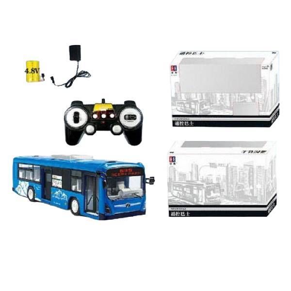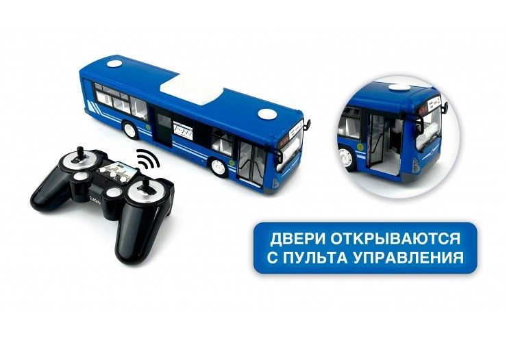 Антенна встроена в корпус. 4-х канальная радиоаппаратура работает на частоте 2,4Ггц и обеспечивает бесперебойную маневренность автомобиля влево, вправо, назад и вперед в радиусе 1000 м. Звуковое сопровождение с регулируемой громкостью имитирует характерные звуки при остановке автобуса, открывании/закрывании дверей, сигнале. Так же предусмотрена подсветка фар и салона автобуса.