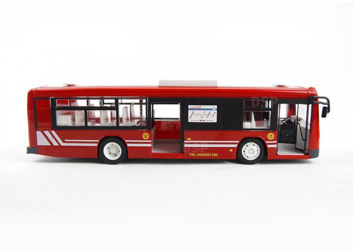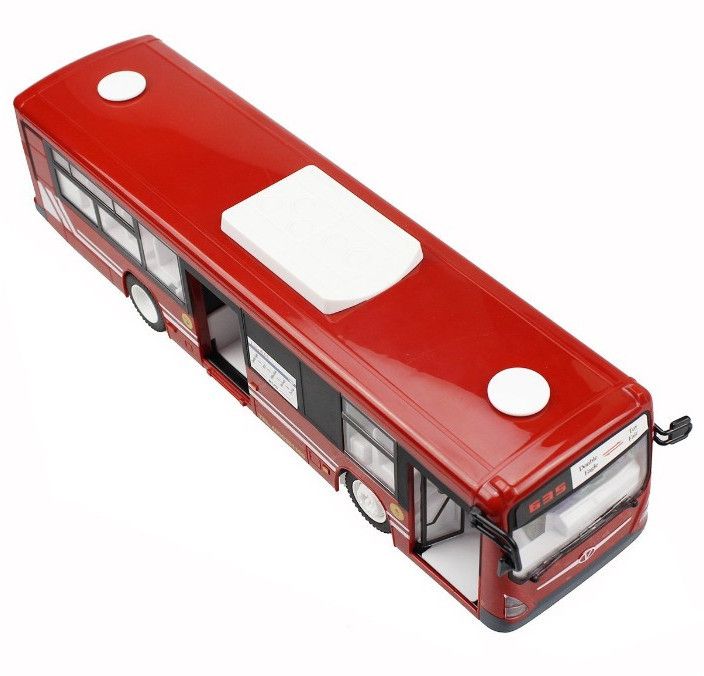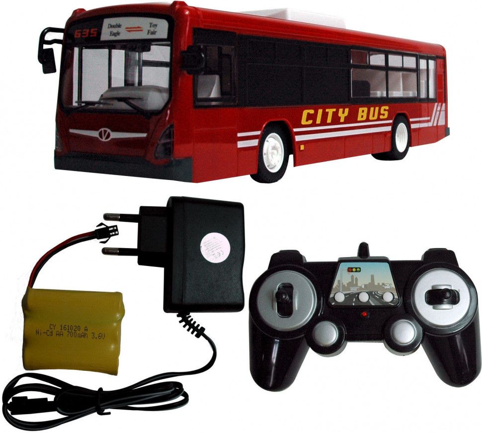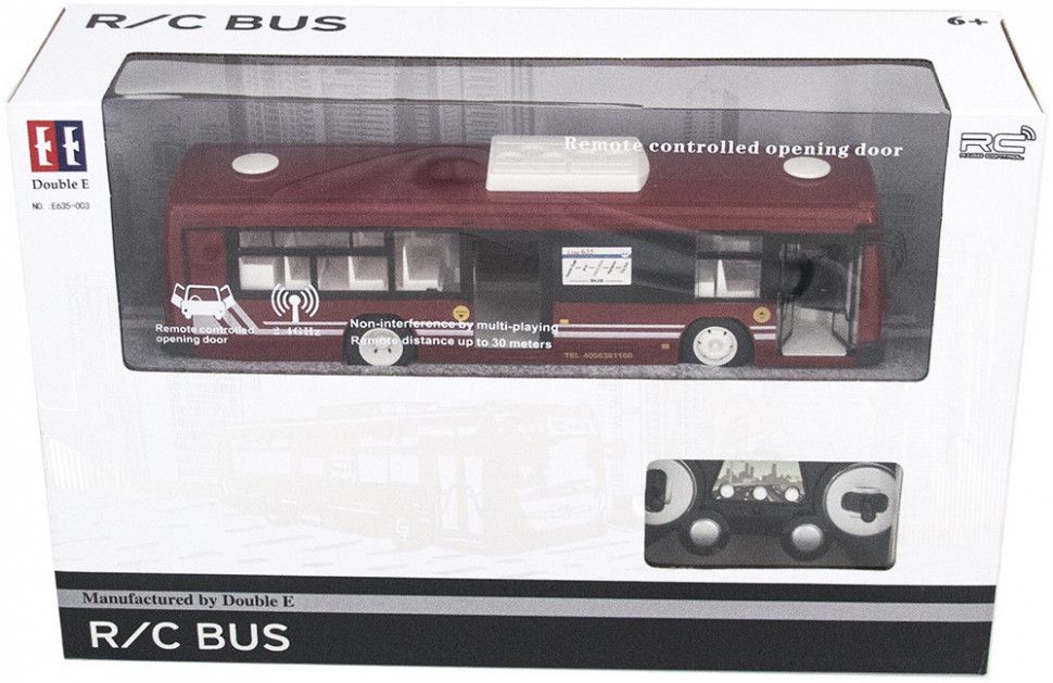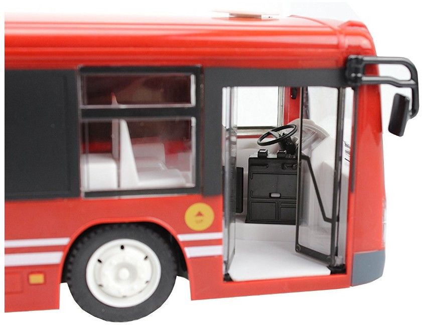 Антенна встроена в корпус. 4-х канальная радиоаппаратура работает на частоте 2,4Ггц и обеспечивает бесперебойную маневренность автомобиля влево, вправо, назад и вперед в радиусе 100 м. Звуковое сопровождение с регулируемой громкостью имитирует характерные звуки при остановке автобуса, открывании/закрывании дверей, сигнале. Так же предусмотрена подсветка фар и салона автобуса.