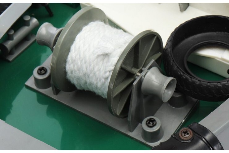 корпусом, оснащен подъемным краном, спасательной лодкой и резиновыми покрышками