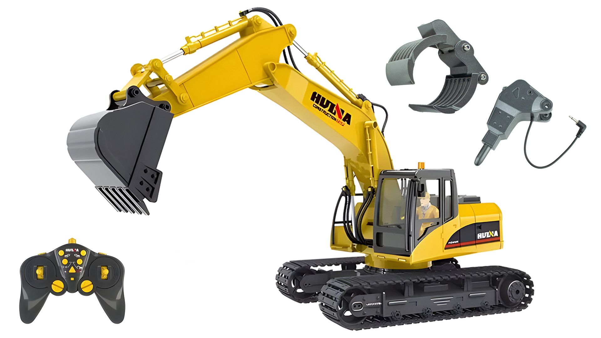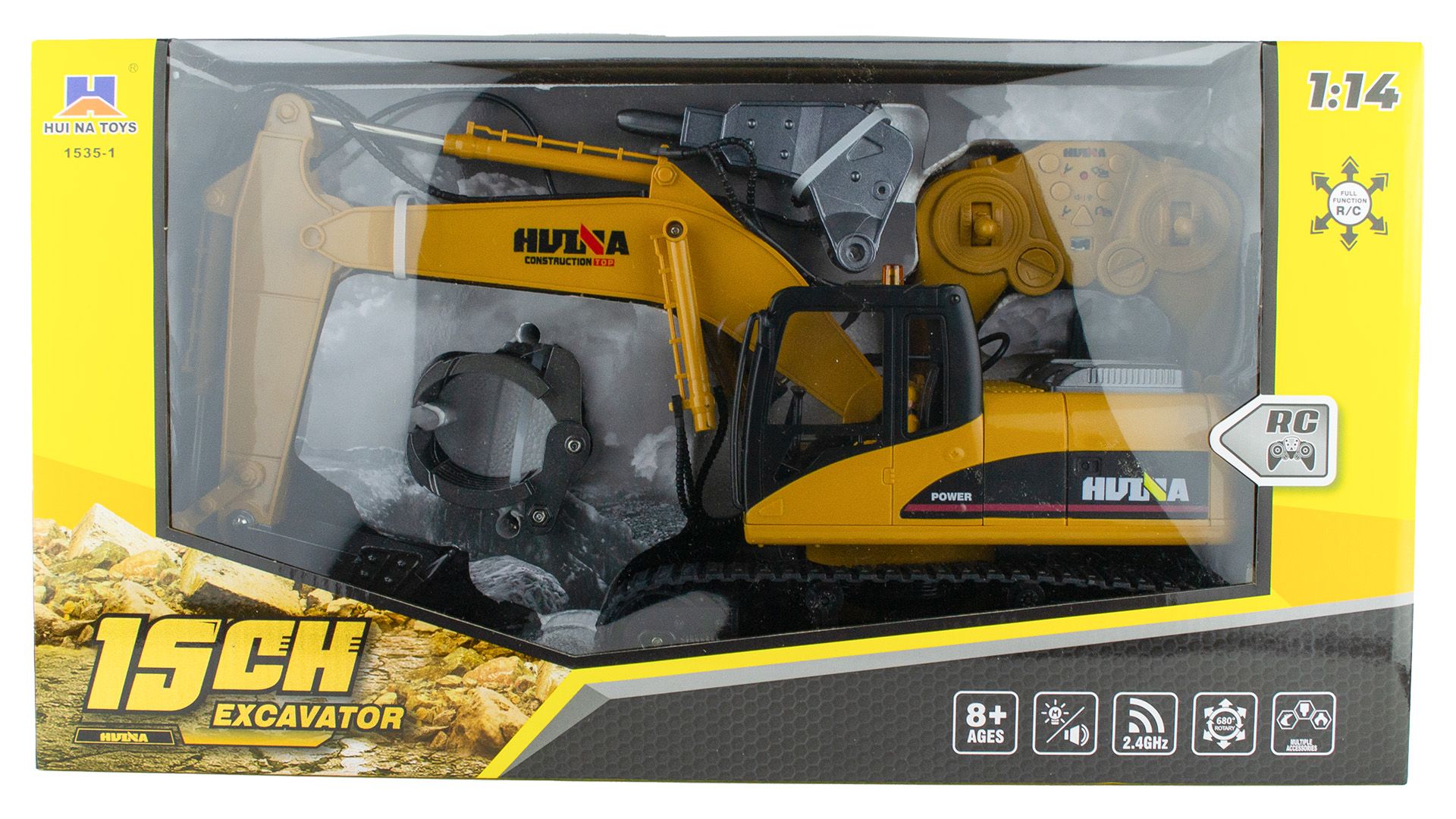 Радиоуправляемый экскаватор HUI NA 15CH масштаб 1:14 2.4G - HN1535 3 в 1 - это экскаватор на радиоуправлении, который поможет вашему малышу выкопать ямку, сгрести/разгрести кучу земли и мусора, перенести стройматериалы на небольшую дистанцию. В комплекте три насадки - Ковш, Захват и Отбойный молоток.