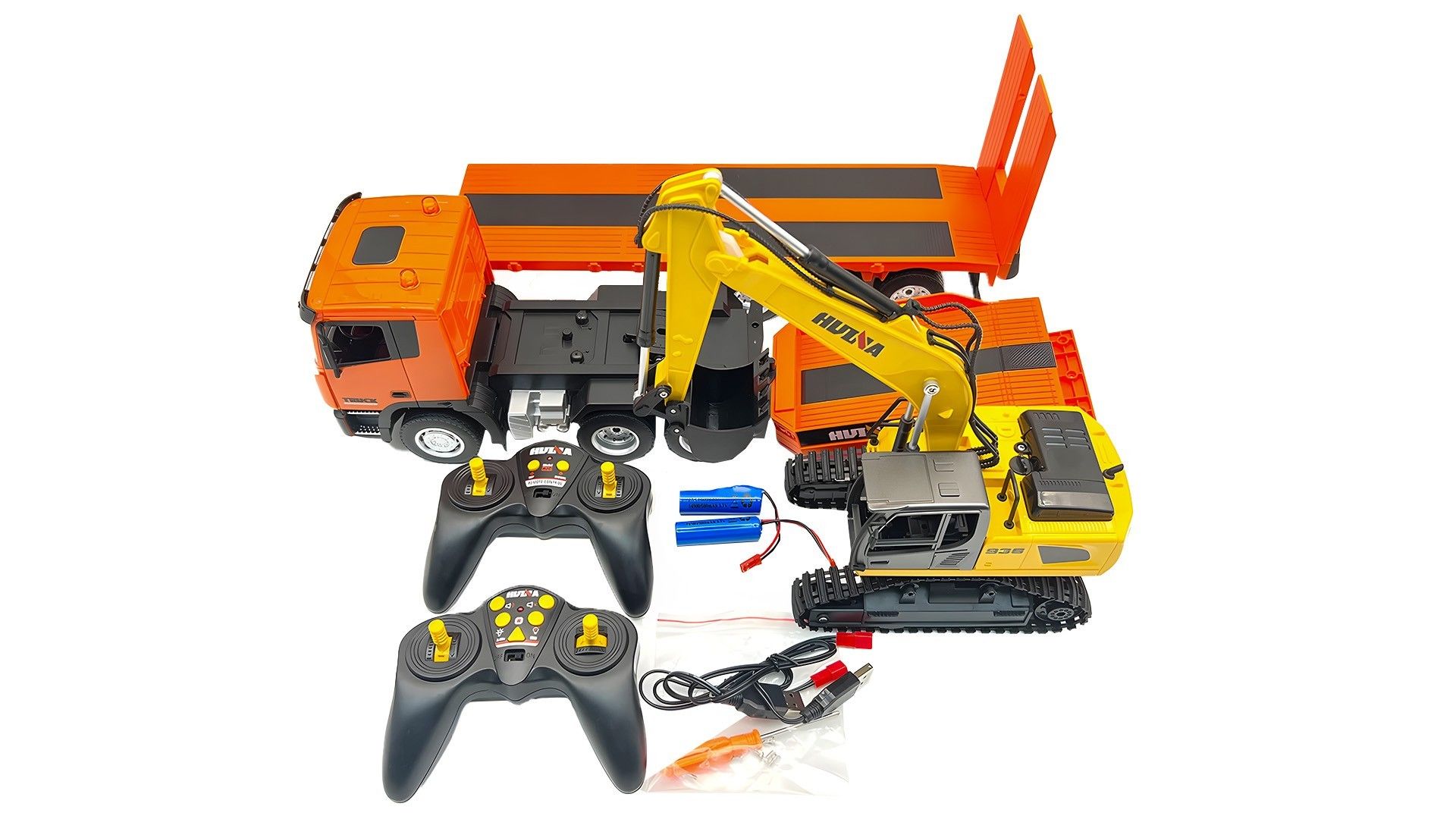 Радиоуправляемый набор экскаватора и грузовика HUI NA TOYS 2.4G 9CH 1/24 RTR - HN1319 - комплект от одного из лидеров по производству игрушек, специализирующегося на строительной технике.