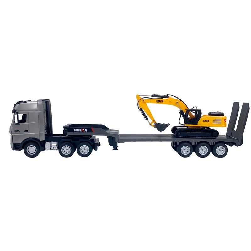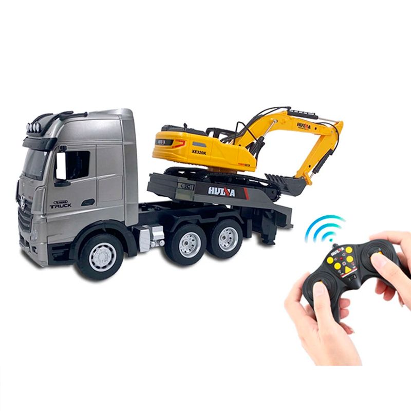 Радиоуправляемый набор бортовой прицеп и экскаватор Huina (свет, звук, акб, 1:18) - HN1522 - это набор техники с дистанционным управлением для детей включает в себя бортовой прицеп с дистанционным управлением, а также строительный самосвал.