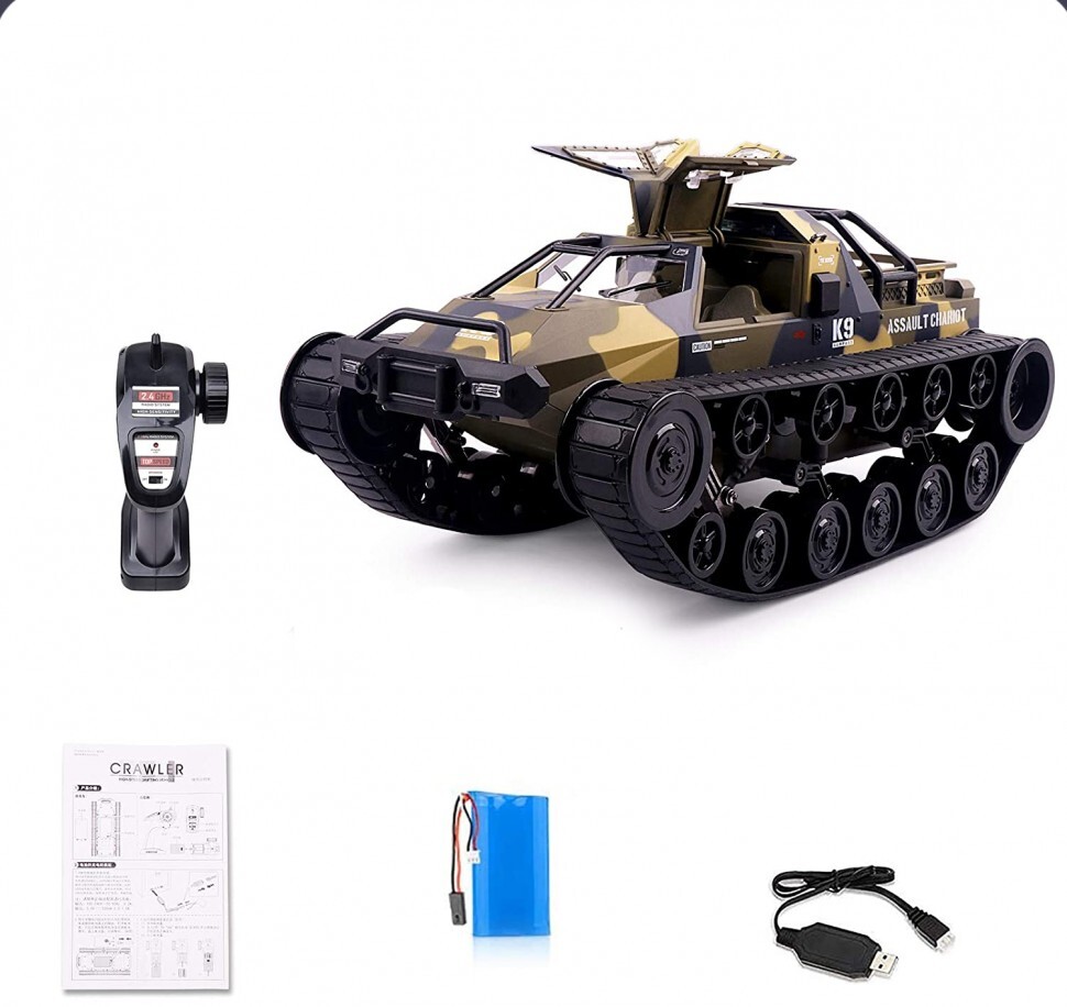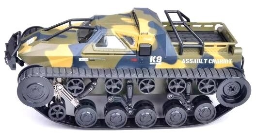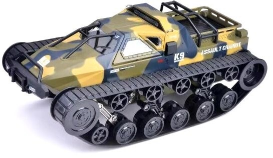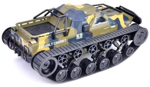 Радиоуправляемый гусеничный камуфляжный вездеход 1:12 2.4G - G2061-CAMO - это универсальный автомобиль, отличающийся высокими показателями проходимости трассы, проложенной на пересеченной местности. Автомобиль имеет детализированную кабину, усиленную раму жесткости, открываются двери. Движется при помощи 2 довольно больших гусениц с глубоким рисунком протектора.