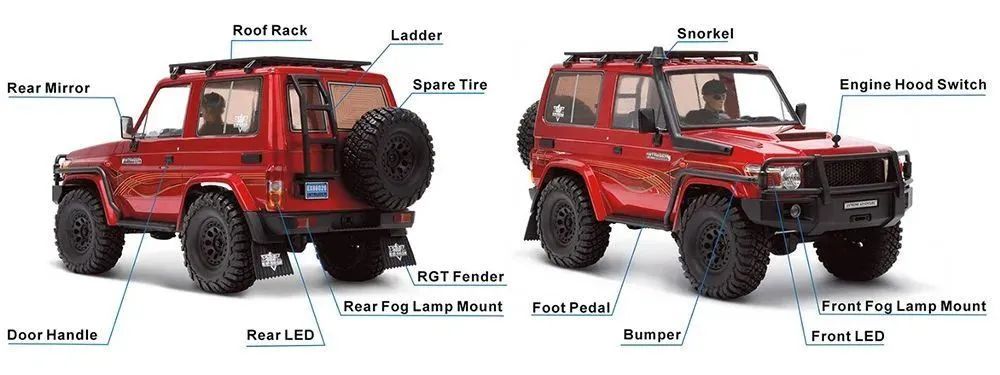 - RGT (#EX86020) 4WD RC Car LC71 INTRUDER - новинка RGT. имеет мощную раму шасси, колесную базу 285 мм, двухступенчатую трансмиссию с регулировкой крутящего момента, механическую комбинацию положительных и отрицательных регулируемых передач, переднюю и заднюю интегрированную коробку передач, а также передний и задний дифференциал блокировки. Таким образом, INTRUDER показывает сильную адаптивность в сложной местности. Оснащен порошковой металлической шестерней во всем транспортном средстве, амортизатором отрицательного давления, высококачественным подшипником с уплотнительной крышкой, металлическим приводным валом CVD, интегрированным металлическим шасси.