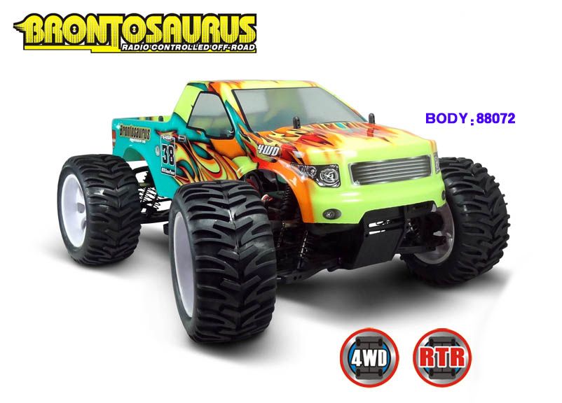 Монстр HSP Brontosaurus PRO – радиоуправляемый внедорожник с отличной проходимостью. Мощная модель 4WD RTR 2.4 G — 94111PRO, выполненная в масштабе 1:10, имеет прочный корпус для увлекательных приключений.