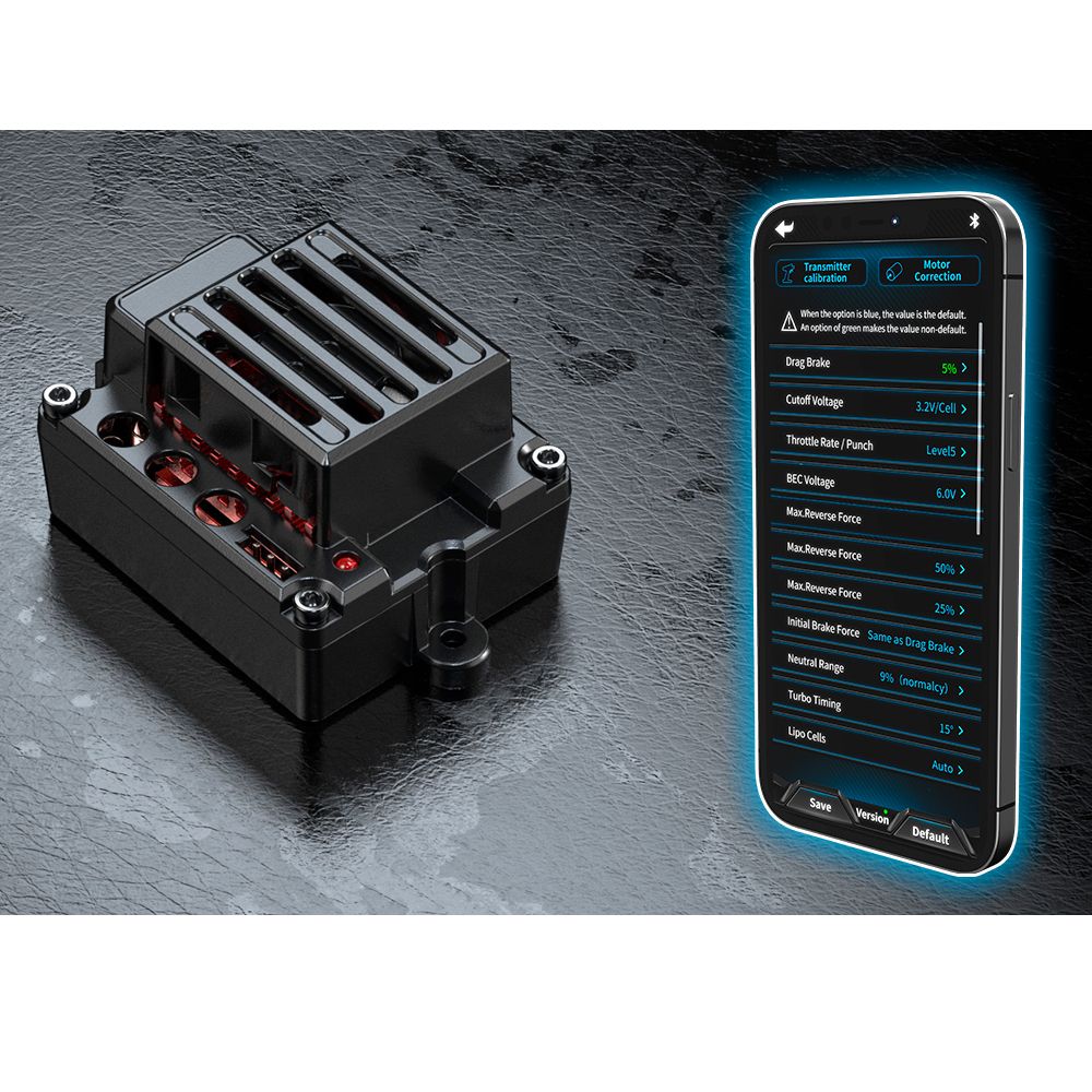 - ESC на 100 А имеет встроенную функцию Bluetooth, позволяющую подключаться к приложению MJX для смартфона. Приложение для смартфона можно использовать для просмотра информации в реальном времени, такой как температура двигателя, а также для настройки параметров вождения с регулируемым усилием, тормозным сопротивлением и т. д.