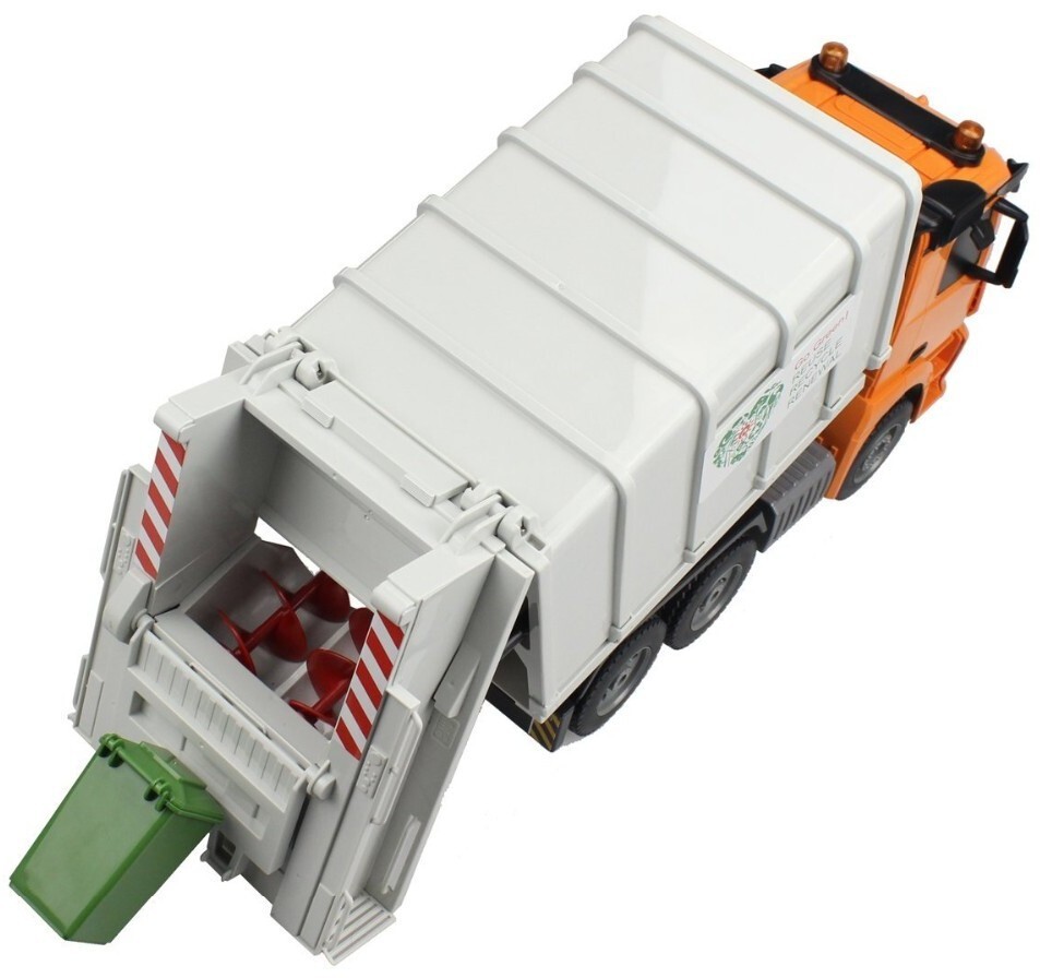 Большая кабина и огромный контейнер делают модель похожей на настоящий мусоровоз. Моделью легко управлять, она не имеет опасных мелких деталей, с управлением справиться даже ребенок в возрасте от 6 лет.