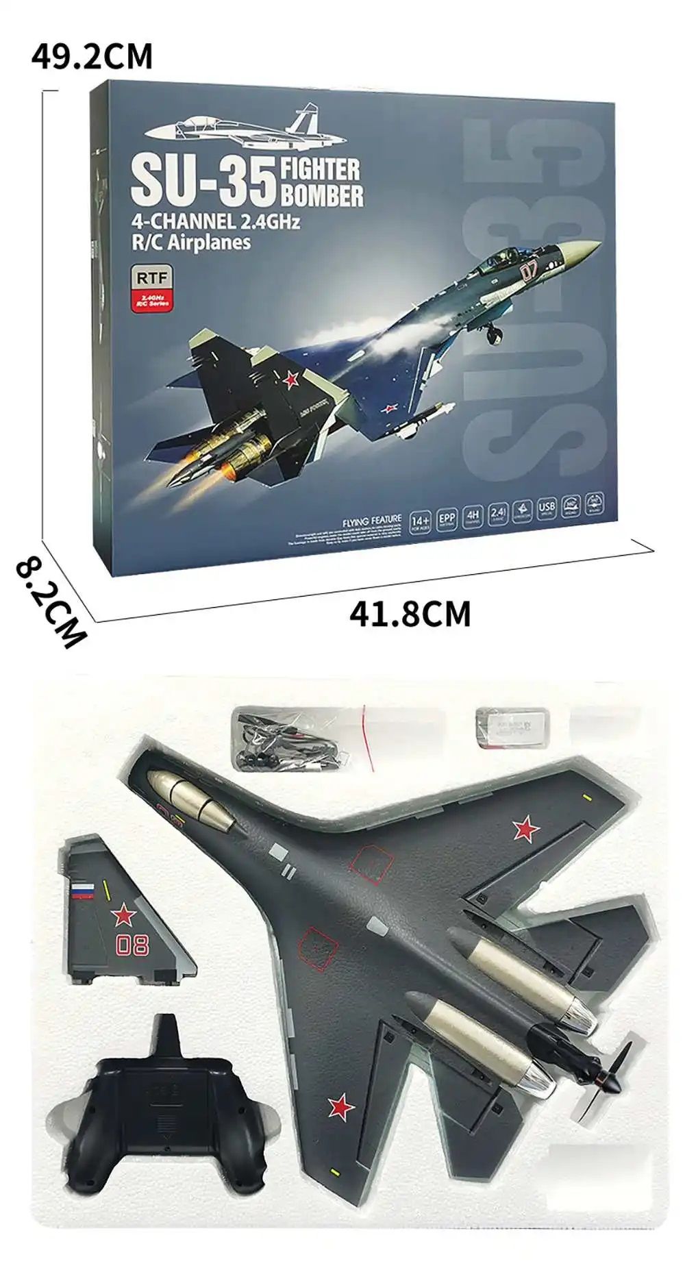 Тип товара: Самолет RC Модель: QF009 (SU-35) Материал изделия: EPP и электронные компоненты Вес: прибл. 706 г