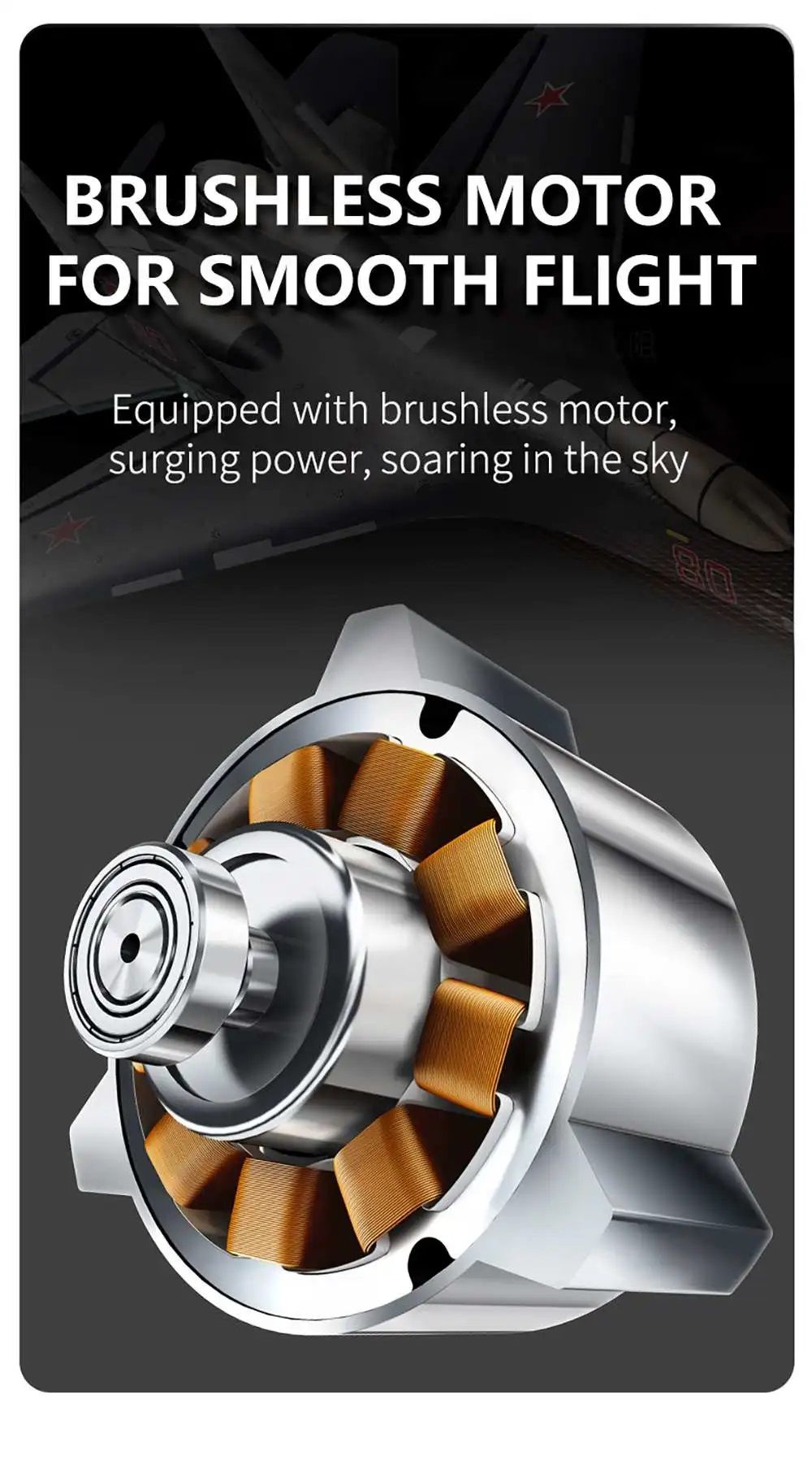 2. Бесколлекторный мотор обеспечивает плавный полет: эффективный двигатель имеет полную мощность. 6-осевой гироскоп Автоматическая стабильная система полета и разумная пневматическая компоновка способствуют очень стабильному полету.