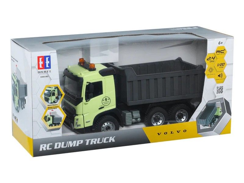 Радиоуправляемый самосвал Volvo FMX от Double Eagle в масштабе 1:20. Высокая степень детализации. Оснащён подъёмным кузовом. Платформа поднимается и сбрасывает песок с помощью пульта дистанционного управления. Самосвал обладает светодиодной подсветкой и рабочими звуками. Эта инженерно-строительная игрушка не только помогает детям получить больше знаний о транспортных средствах, но и позволяет им потенциально заинтересоваться профессиями, связанными с ними. модификации модели на любой вкус.