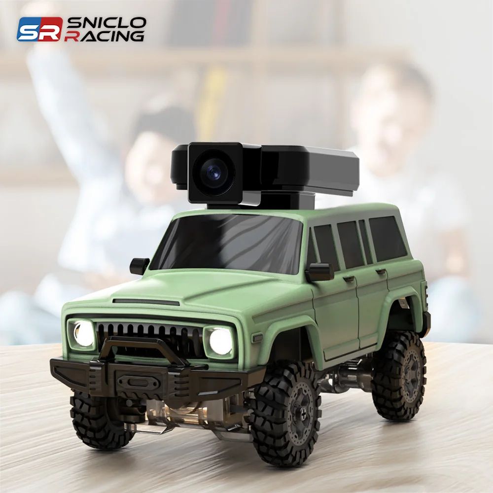 Радиоуправляемая машинка с пультом управления, FPV камерой и видео-шлемом. Является уменьшенной копией внедорожника Jeep в масштабе 1:64.