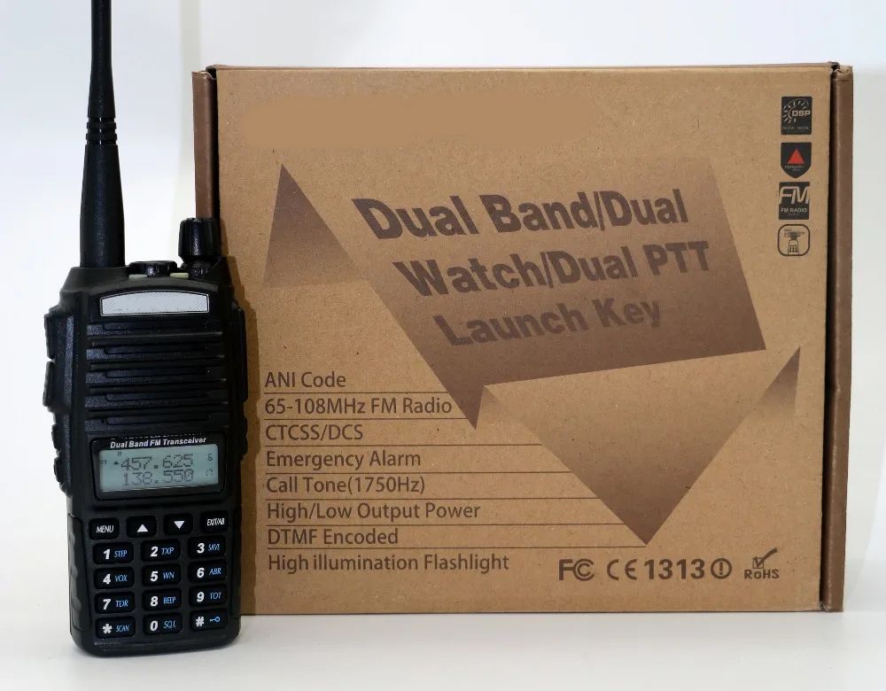 Рация UV-82 – практичное и функциональное устройство связи для водителей, охранников, охотников, рыболовов, туристов и любителей. Модель представляет собой двух-диапазонный переносной приемник-передатчик с экраном. Может осуществлять одновременный прием двух разных частот. Главная особенность UV-82 – наличие сдвоенной кнопки передачи сигнала, что очень удобно при работе одновременно на двух частотах.